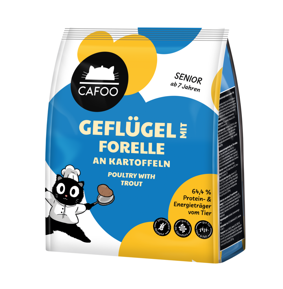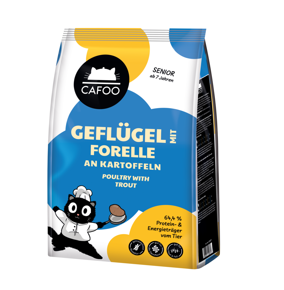 rockenfutter von CAFOO mit Geflügel & Forelle an Kartoffeln für Senior Katzen