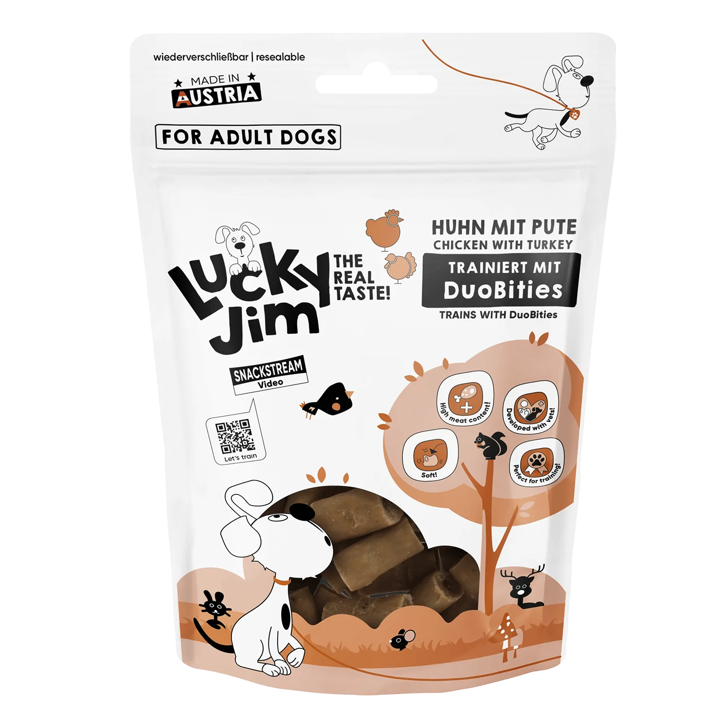 Lucky Jim DuoBities Huhn mit Pute 70 g – Softe Trainingssnacks mit Geflügel