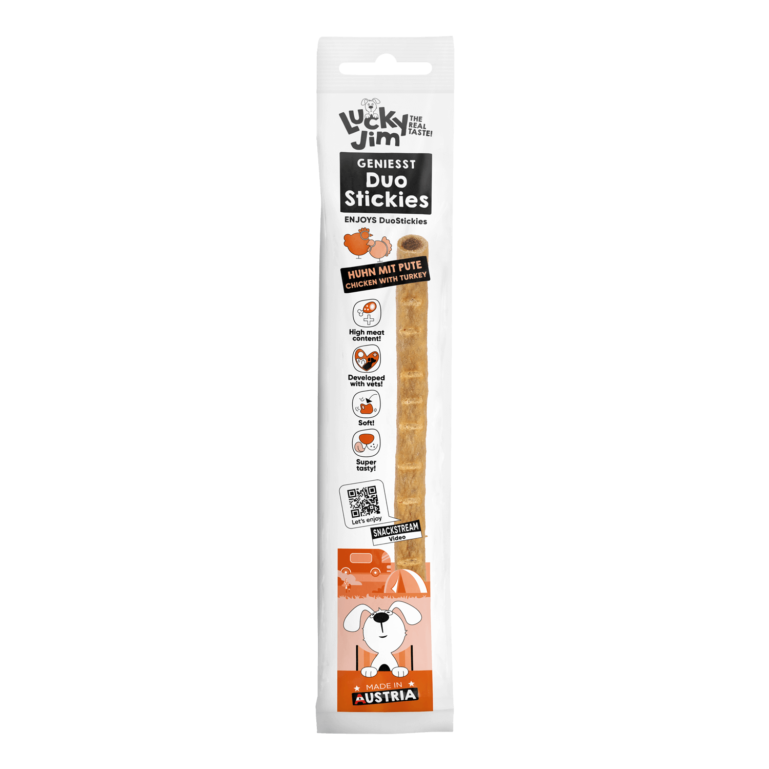 Lucky Jim DuoStickies Huhn mit Pute 15 g – Softstick mit gefülltem Kern