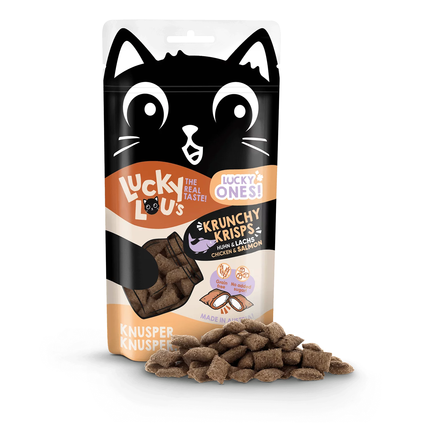 Lucky Lou Krunchy Krisps Huhn & Lachs 60 g – Knuspriger Katzensnack mit Fisch