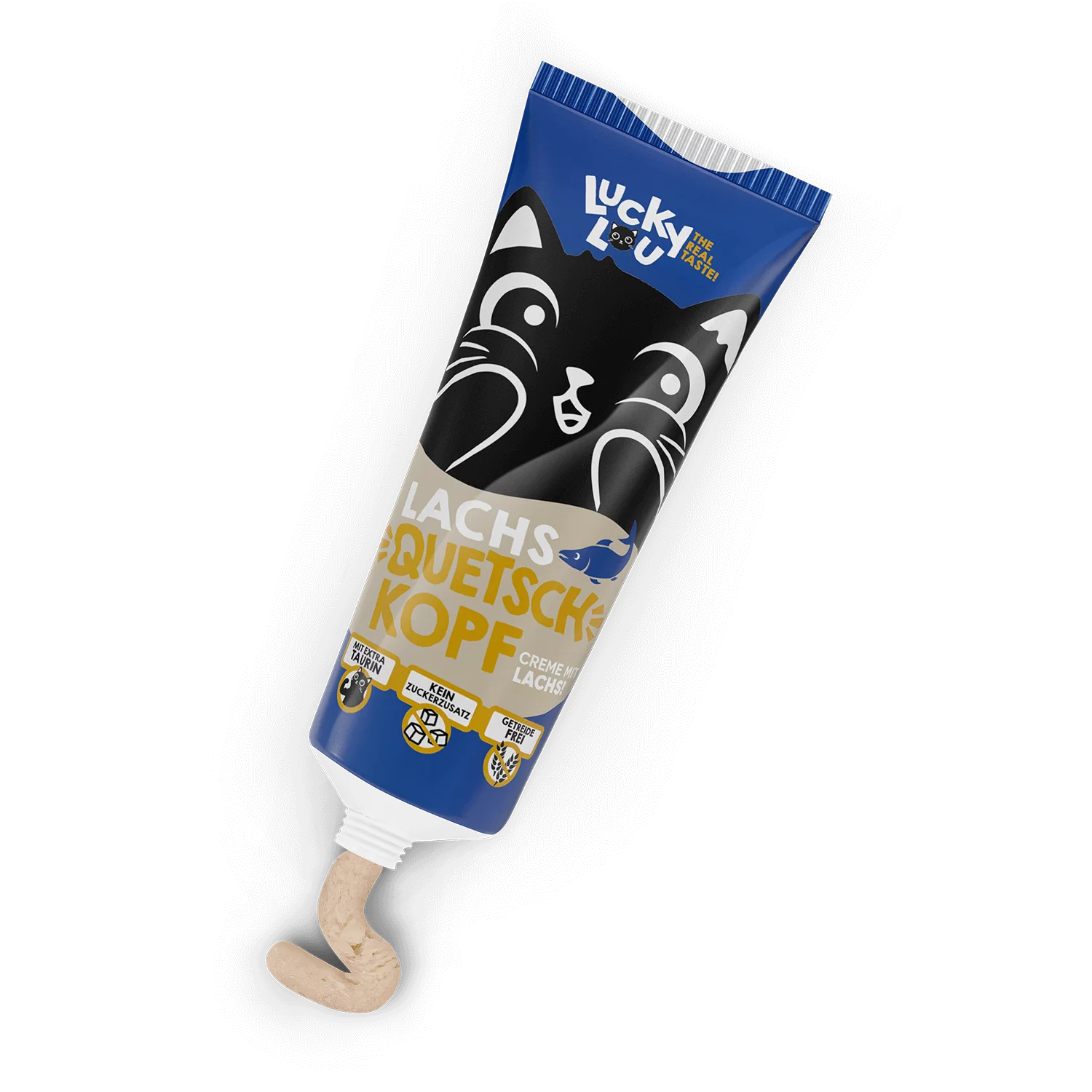Lucky Lou Quetschkopf Adult Lachs 75 g – Cremiger Fisch-Snack für Katzen