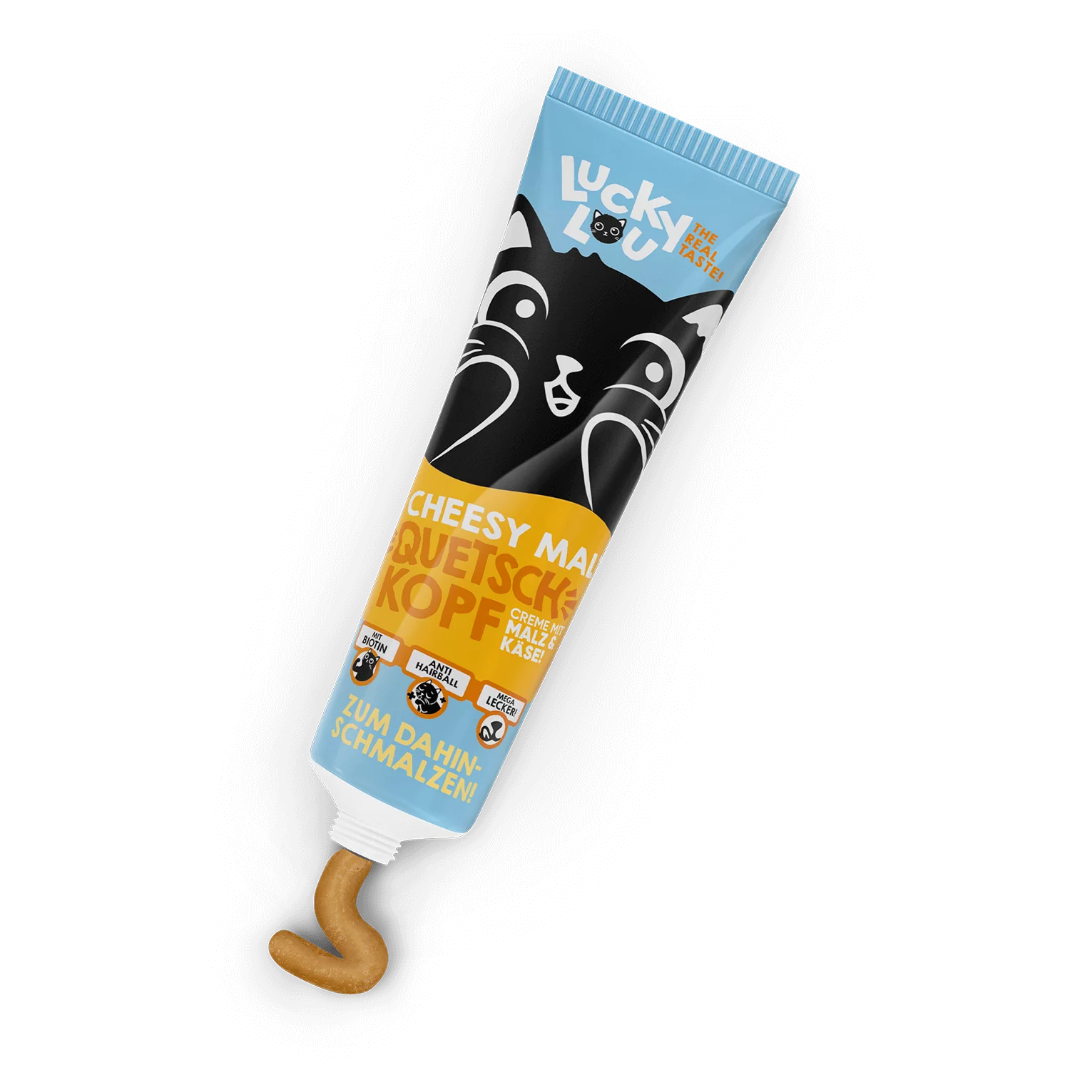 Lucky Lou Quetschkopf Adult Malz & Käse 100 g – Cremiger Snack mit Anti-Hairball-Effekt