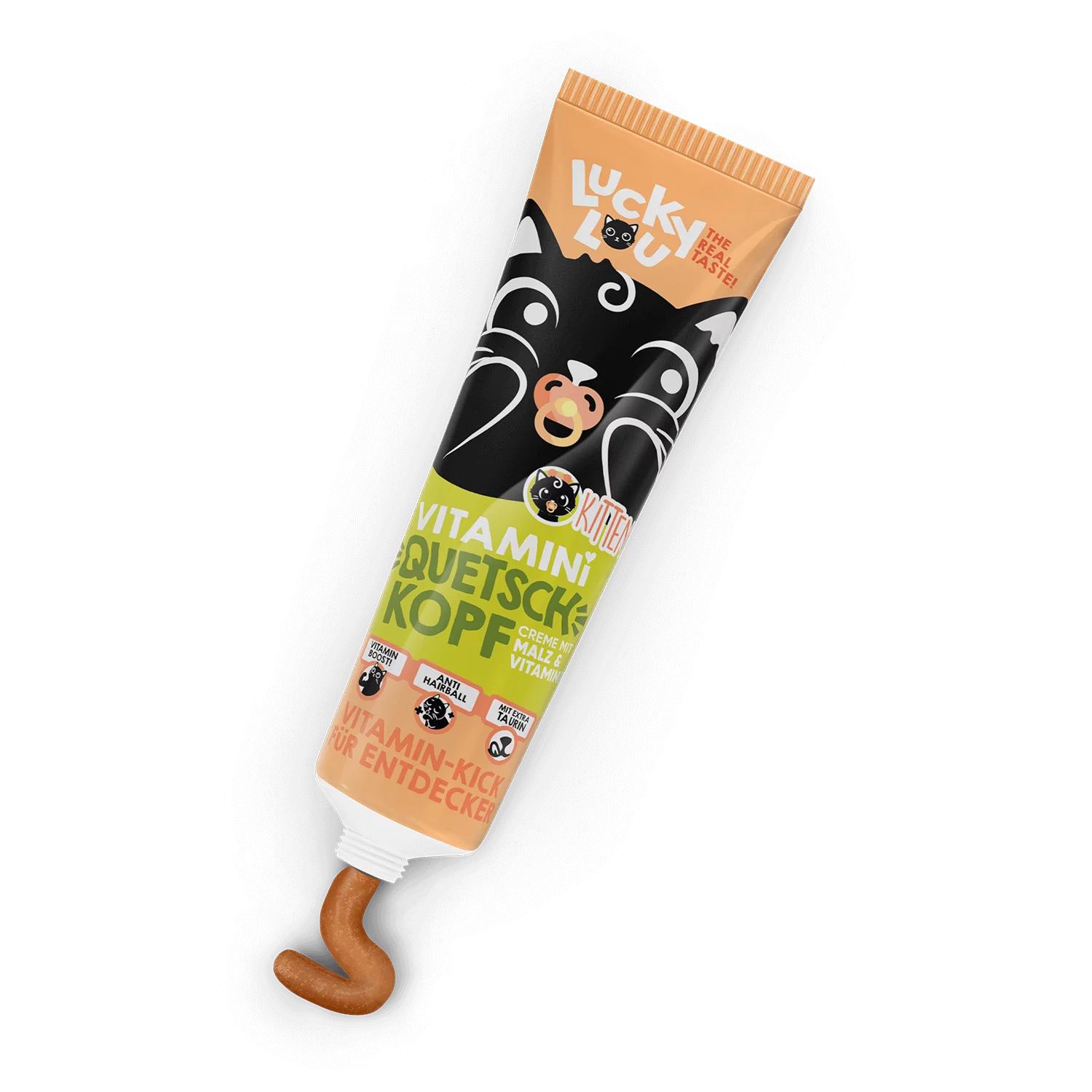 Lucky Lou Quetschkopf Kitten Malz & Vitamine 100 g – Cremiger Vitamin-Snack für junge Katzen